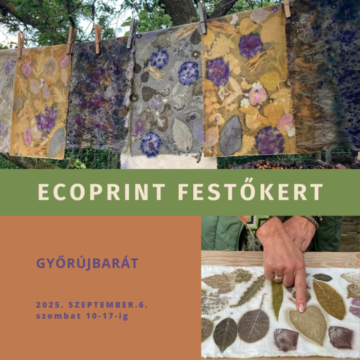 A program 10:00-17:00 óráig tart és Győr és Pannonhalma közötti győrújbaráti Málé völgyben megbújó magánkert ( pontos koordinátákat e-mailben küldünk ) biztosítja a helyszínt. Gyere el az édenkertbe, tölts velünk egy inspiráló napot, amikor egy rövid növénygyűjtő séta után együtt ecoprintelünk.